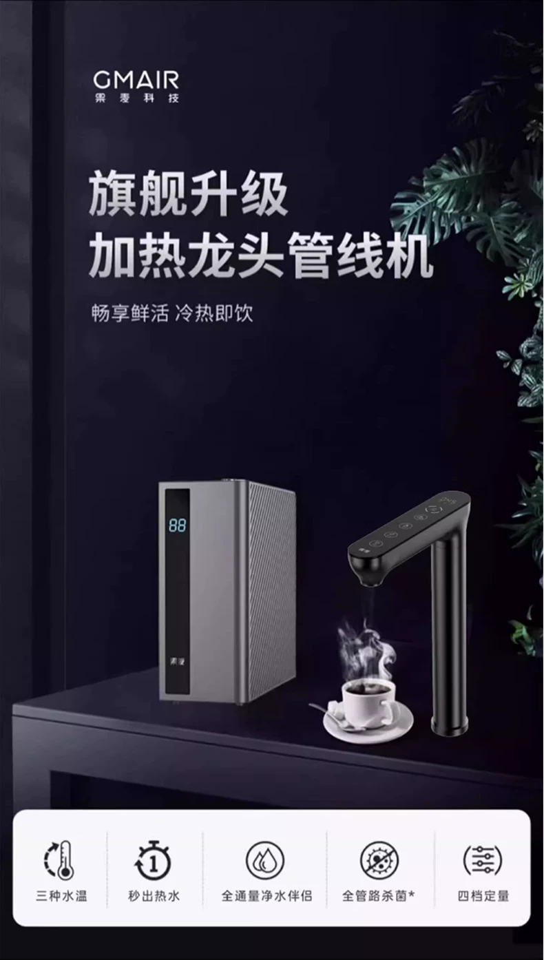 首页/产品/GM-GF02果麦智能龙头 + 加热管线机 GM-GF02参数列表产品尺寸105 * 242 * 275 mm龙头尺寸40 * 190 * 288.5 mm制水流速90 °C 20 L/h额定功率2200 W购买渠道天猫 GM-GF02