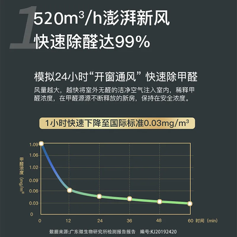 首页/产品/GM520 Pro果麦壁挂式静音除甲醛新风机 GM520 Pro参数列表产品尺寸238 * 374 * 536 mm额定功率90 W热能功率500 W + 500 W产品重量20 kg适用面积160 ㎡运行风量60 - 420 m³/h运行噪声12.3 - 48.9 dB(A)智能硬件支持 小爱同学 和 天猫精灵 语音控制购买渠道天猫 GM520 Pro京东 GM520 Pro